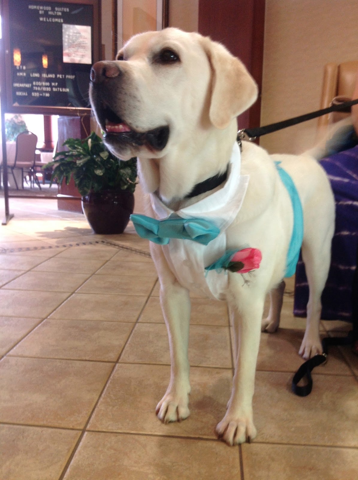 Unbelievably, Andrea didn't have a date to Dexter's wedding, the Wigglebutt Wedding, so she asked ME to be her date. I was so excited my tail started wagging like crazy. Of course I said yes!